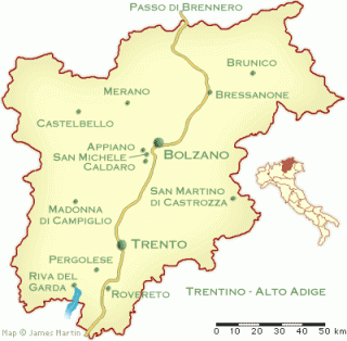 Region Trentino (Trydent) na południu odcina skalisty brzeg jeziora Garda. W tych okolicach położony jest jeden ze znanych rejonów wspinaczkowych Arco i to był powód moich odwiedzin winnych miejsc. Poznałam lokalne szczepy Teroldego Rotaliano, Marzemino, a z sąsiedniego Alto Adige spróbowałam Schiavy (inaczej Vernatsch), Lagrein.